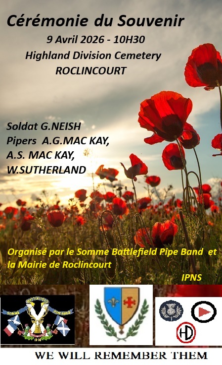 9 Avril, Cérémonie George Neish à Roclincourt (62) 2 Mai: Acy (02), Animation Mariage